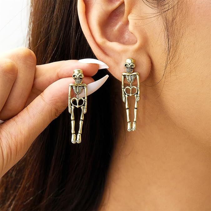 - Striking Skeleton Design: Each earring features a detailed skeleton. embodying a gothic charm that complements any punk or dark-themed outfit.