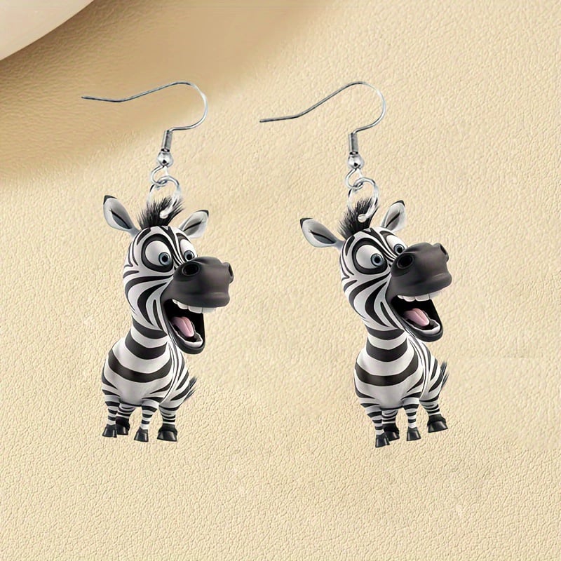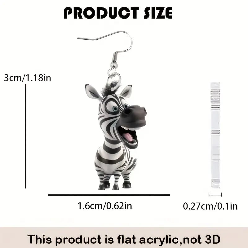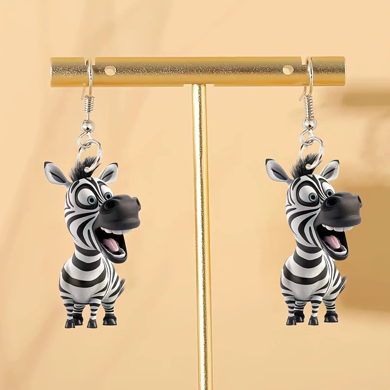 Each earring features a cheerful. cartoon-style zebra that looks like it just stepped out of an animated safari! With its expressive face and detailed stripes. this unique design will make you smile every time you wear it.
